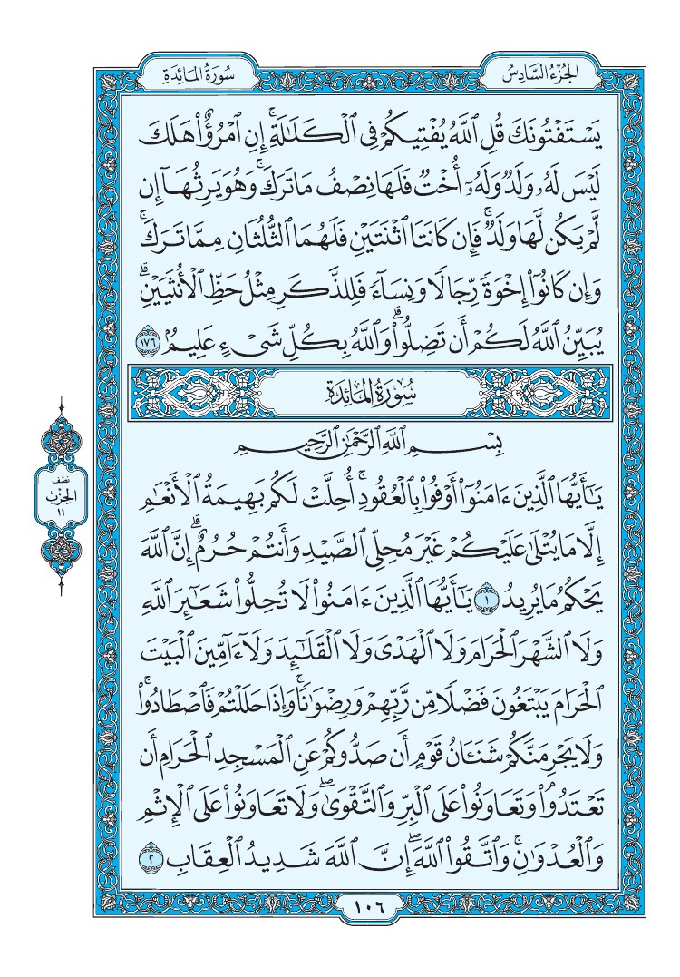 (لما روي عن عبد الله بن عمرو [رضي الله عنه] قال: «آخرُ سورةٍ أُنزلتِ المائدةُ» [رواه الترمذي-إسناده حسن]).
