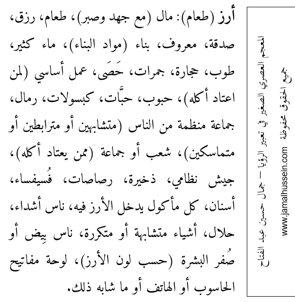 ما هو تفسير رؤيا الأرز في المنام؟ كتبت بواسطةJamal Hussein Abdelfattah13 سبتمبر,20207 أفريل,2021نشرت تحت تصنيفتفسير رموز الرؤياالأوسمة:مفسر أحلام،معبر موثوق،معبر ثقة،معبر رؤى،معبر رؤيا،تفسير أحلام،تعبير رؤيا،جمال حسين،جمال حسين عبد الفتاح،حلم أرز،حلم ارز،حلمت كبسة،حلمت أكل أرز،حلمت أني آكل أرز،حلمت أرز،خدمة تفسير أحلام،رقم معبر رؤيا،رأيت أرز،رؤيا أرز،رؤيا الأرز المعجم العصري الصغير في تعبير الرؤيا من تأليف جمال حسين عبد الفتاح كاتب وباحث مسلم في علم تعبير الرؤيا اشترك الآن في خدمة تعبير الرؤيا على الأصول الشرعية الإسلامية و الدورة الدراسية المتميزة في علم التعبير وفق منهج شرعي أو يمكنك دعم موقعنا أيضا شارك الموضوعالمزيد النقر للمشاركة على X (فتح في نافذة جديدة) X انقر للمشاركة على فيسبوك (فتح في نافذة جديدة) فيس بوك النقر لإرسال رابط عبر البريد الإلكتروني إلى صديق (فتح في نافذة جديدة) البريد الإلكتروني اضغط للطباعة (فتح في نافذة جديدة) طباعة اضغط لتشارك على LinkedIn (فتح في نافذة جديدة) LinkedIn اضغط لمشاركة الموضوع على Reddit (فتح في نافذة جديدة) Reddit اضغط للمشاركة على Tumblr (فتح في نافذة جديدة) Tumblr اضغط للمشاركة على Pinterest (فتح في نافذة جديدة) Pinterest اضغط للمشاركة على Pocket (فتح في نافذة جديدة) Pocket إعجاب تحميل... مرتبط نُشر بواسطة Jamal Hussein Abdelfattah Dream interpretation and Ruqya specialist عرض مقالات أكثر