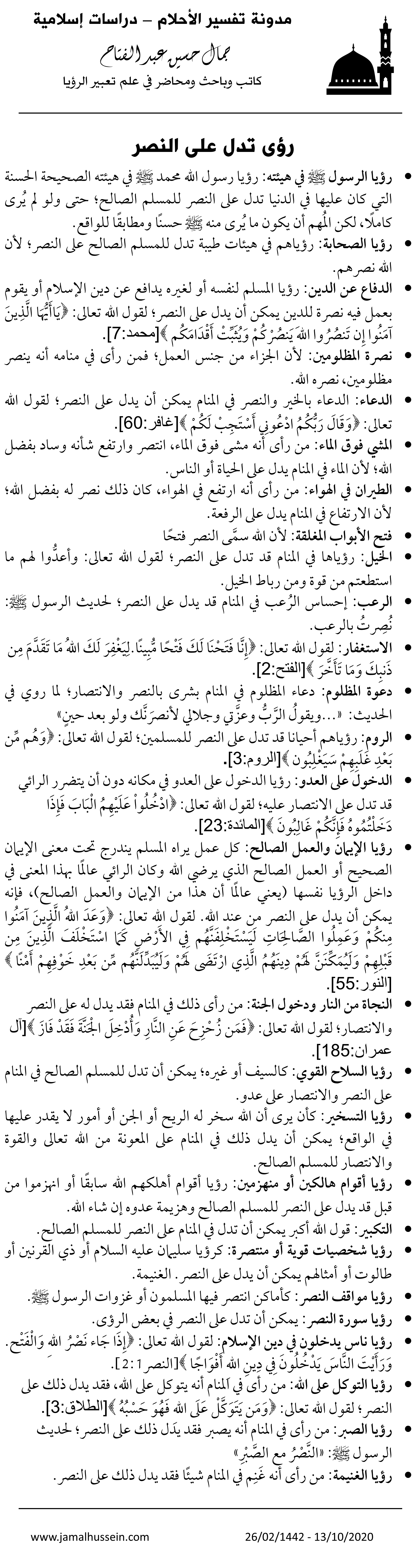 ما هي رؤى المنام التي تدل على النصر؟ كتبت بواسطةJamal Hussein Abdelfattah13 أكتوبر,2020نشرت تحت تصنيفغير مصنفالأوسمة:معبر رؤى،أحلام تدل انتصار،أحلام تدل على النصر،النصر،تعبير رؤيا،جمال حسين،جمال حسين عبد الفتاح،حلم نصر،رؤى انتصار،رؤى تدل على النصر،رؤيا نصر اشترك الآن في خدمة تعبير الرؤيا على الأصول الشرعية الإسلامية و الدورة الدراسية المتميزة في علم التعبير وفق منهج شرعي أو يمكنك دعم موقعنا أيضا شارك الموضوعالمزيد النقر للمشاركة على X (فتح في نافذة جديدة) X انقر للمشاركة على فيسبوك (فتح في نافذة جديدة) فيس بوك النقر لإرسال رابط عبر البريد الإلكتروني إلى صديق (فتح في نافذة جديدة) البريد الإلكتروني اضغط للطباعة (فتح في نافذة جديدة) طباعة اضغط لتشارك على LinkedIn (فتح في نافذة جديدة) LinkedIn اضغط لمشاركة الموضوع على Reddit (فتح في نافذة جديدة) Reddit اضغط للمشاركة على Tumblr (فتح في نافذة جديدة) Tumblr اضغط للمشاركة على Pinterest (فتح في نافذة جديدة) Pinterest اضغط للمشاركة على Pocket (فتح في نافذة جديدة) Pocket إعجاب تحميل... مرتبط نُشر بواسطة Jamal Hussein Abdelfattah Dream interpretation and Ruqya specialist عرض مقالات أكثر