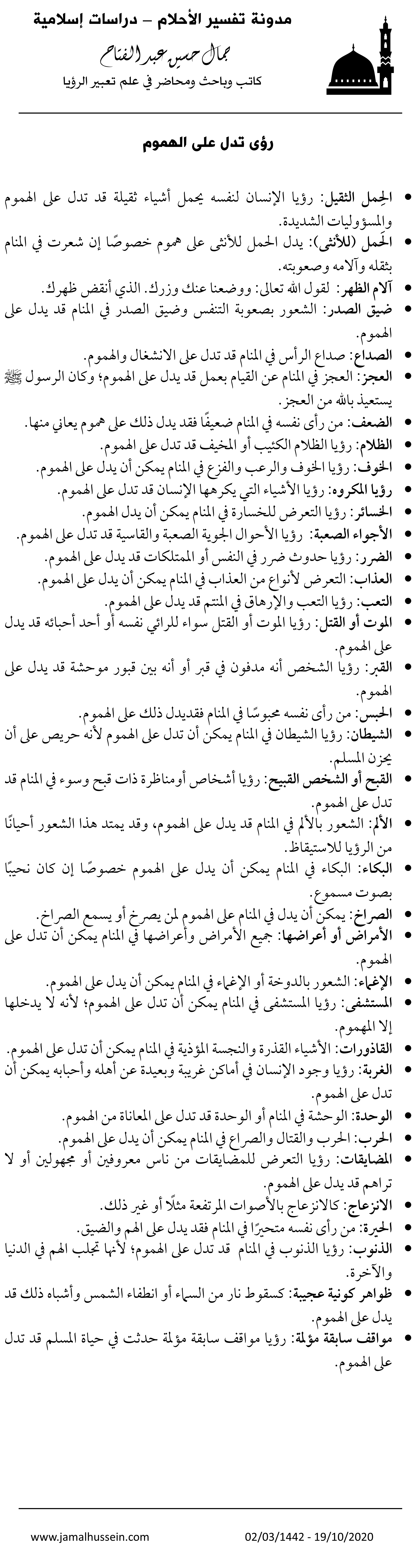 ما هي رموز الرؤى التي تدل على الهموم؟ كتبت بواسطةJamal Hussein Abdelfattah19 أكتوبر,2020نشرت تحت تصنيفغير مصنفالأوسمة:قطر،كوابيس،كورونا،كابوس،مفسر أحلام،معبر رؤى،معبر رؤيا،هموم في الأحلام،آيفون،أحلام مزعجة،أحلام هموم،أحلام صعبة،الإمارات،الدوحة،السعودية،جمال حسين،جمال حسين عبد الفتاح،حلم مخيف،حلم مرعب،حلم مزعج،حلم هم،حلم افزعني،دبي مول،رؤيا مفزعة،رؤيا مخيفة،رؤيا مرعبة،رؤيا هموم اشترك الآن في خدمة تعبير الرؤيا على الأصول الشرعية الإسلامية و الدورة الدراسية المتميزة في علم التعبير وفق منهج شرعي أو يمكنك دعم موقعنا أيضا شارك الموضوعالمزيد المشاركة على X (فتح في نافذة جديدة) X شارك على فيس بوك (فتح في نافذة جديدة) فيس بوك إرسال رابط بالبريد الإلكتروني إلى صديق (فتح في نافذة جديدة) البريد الإلكتروني اطبع (فتح في نافذة جديدة) طباعة المشاركة على LinkedIn (فتح في نافذة جديدة) LinkedIn المشاركة على Reddit (فتح في نافذة جديدة) Reddit مشاركة على Tumblr (فتح في نافذة جديدة) Tumblr المشاركة على Pinterest (فتح في نافذة جديدة) Pinterest إعجاب تحميل... مرتبط نُشر بواسطة Jamal Hussein Abdelfattah Dream interpretation and Ruqya specialist عرض مقالات أكثر