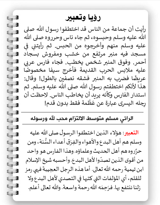 رؤيا رسول الله صلى الله عليه وسلم وشيخ الإسلام ابن تيمية رحمه الله كتبت بواسطةJamal Hussein Abdelfattah6 أفريل,20226 أفريل,2022نشرت تحت تصنيفرؤيا وتعبيرالأوسمة:dream interpretation،dream interpretation service،Islamic centre،Islamic dream interpretation،قطر،معبر رؤيا،الكويت،الإمارات،البحرين،السعودية،ابن تيمية،تفسير أحلام،تعبير رؤيا،جمال حسين،رأيت الرسول،رؤيا الرسول،شيخ الإسلام اشترك الآن في خدمة تعبير الرؤيا على الأصول الشرعية الإسلامية و الدورة الدراسية المتميزة في علم التعبير وفق منهج شرعي أو يمكنك دعم موقعنا أيضا شارك الموضوعالمزيد المشاركة على X (فتح في نافذة جديدة) X شارك على فيس بوك (فتح في نافذة جديدة) فيس بوك إرسال رابط بالبريد الإلكتروني إلى صديق (فتح في نافذة جديدة) البريد الإلكتروني اطبع (فتح في نافذة جديدة) طباعة المشاركة على LinkedIn (فتح في نافذة جديدة) LinkedIn المشاركة على Reddit (فتح في نافذة جديدة) Reddit مشاركة على Tumblr (فتح في نافذة جديدة) Tumblr المشاركة على Pinterest (فتح في نافذة جديدة) Pinterest إعجاب تحميل... مرتبط نُشر بواسطة Jamal Hussein Abdelfattah Dream interpretation and Ruqya specialist عرض مقالات أكثر